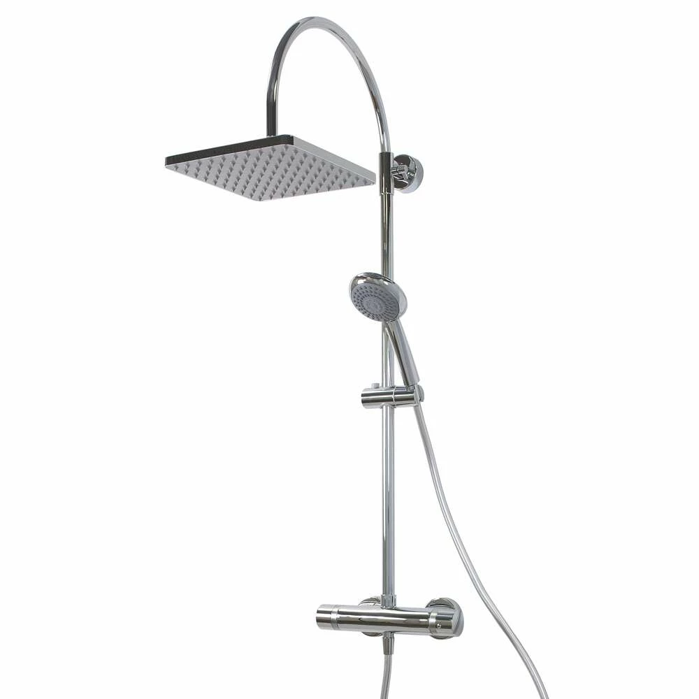 - groĂźe (250 x 250 mm), bewegliche Tellerkopfbrause in eckiger Form
