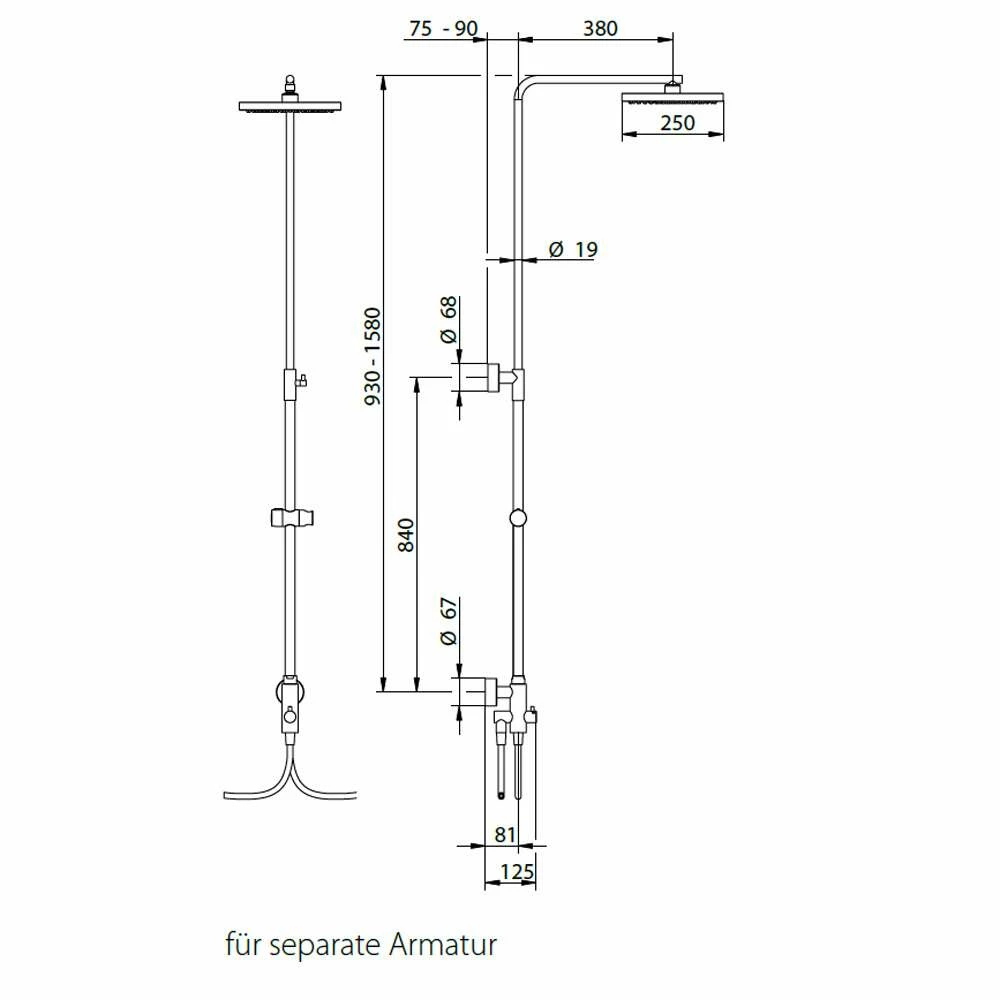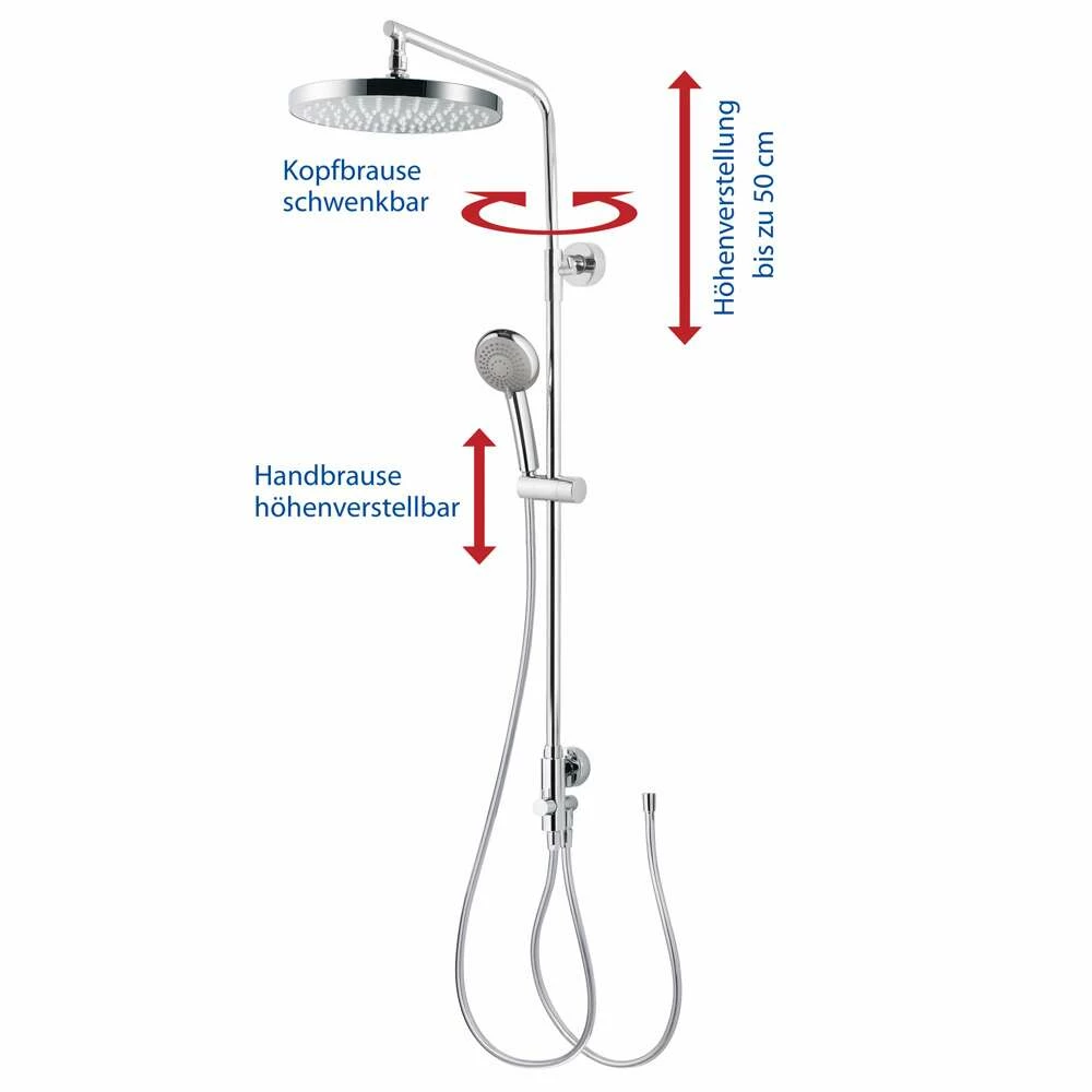 - maximaler Duschkomfort auch bei niedrigen Deckenhöhen durch Verstellung bis zu 500 mm