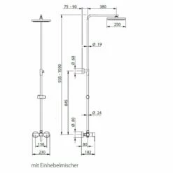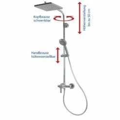 - maximaler Duschkomfort auch bei niedrigen Deckenhöhen durch Verstellung bis zu 500 mm