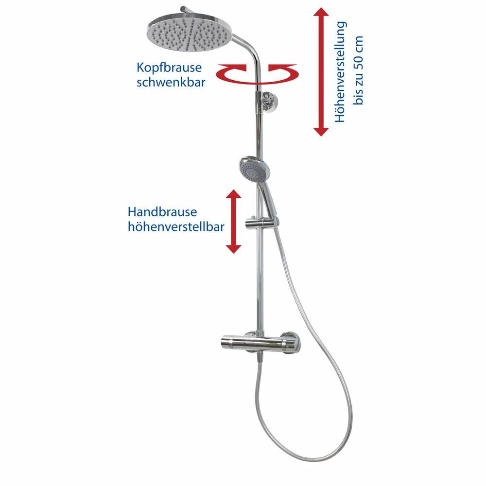 - maximaler Duschkomfort auch bei niedrigen Deckenhöhen durch Verstellung bis zu 500 mm