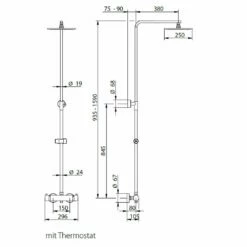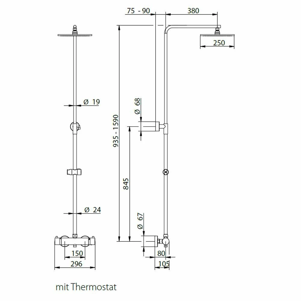 - Höhe: 935 – 1590 mm, Breite: 296 mm, Tiefe: 580 mm