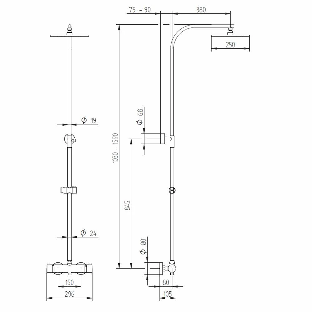 - MaĂźe: H 1060 – 1650 x B 300 x T 441 – 456 mm
