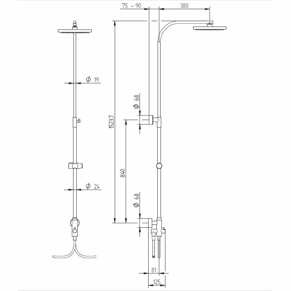 - MaĂe: H 1030 – 1524 x B 250 x T 505 mm