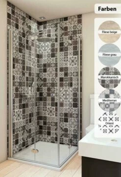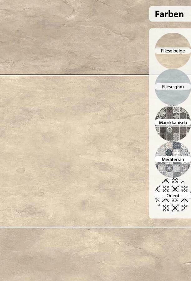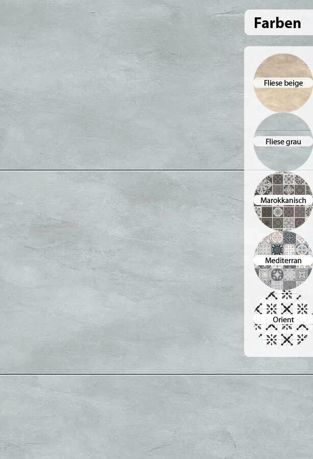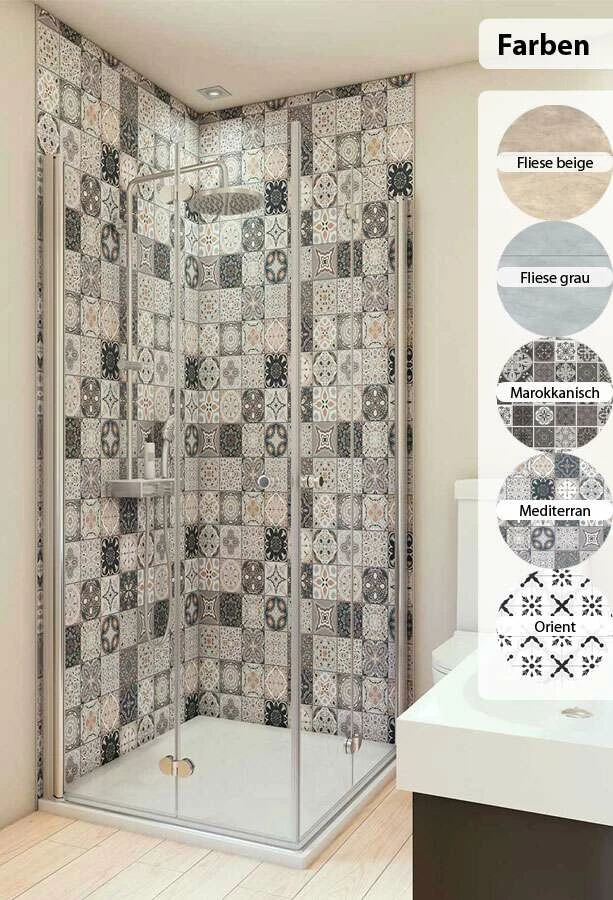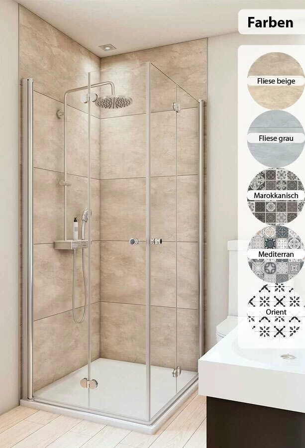 Zur fachgerechten Montage der Duschrückwände benötigen Sie zusätzlich das passende Montage-Set. Weiterhin empfehlen wir die zugehörigen Profile zur Verkleidung der Kanten. Beides finden Sie am Ende dieser Seite verlinkt.