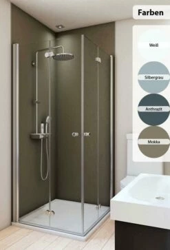 Zur fachgerechten Montage der Duschrückwände benötigen Sie zusätzlich das passende Montage-Set. Weiterhin empfehlen wir die zugehörigen Profile zur Verkleidung der Kanten. Beides finden Sie am Ende dieser Seite verlinkt.