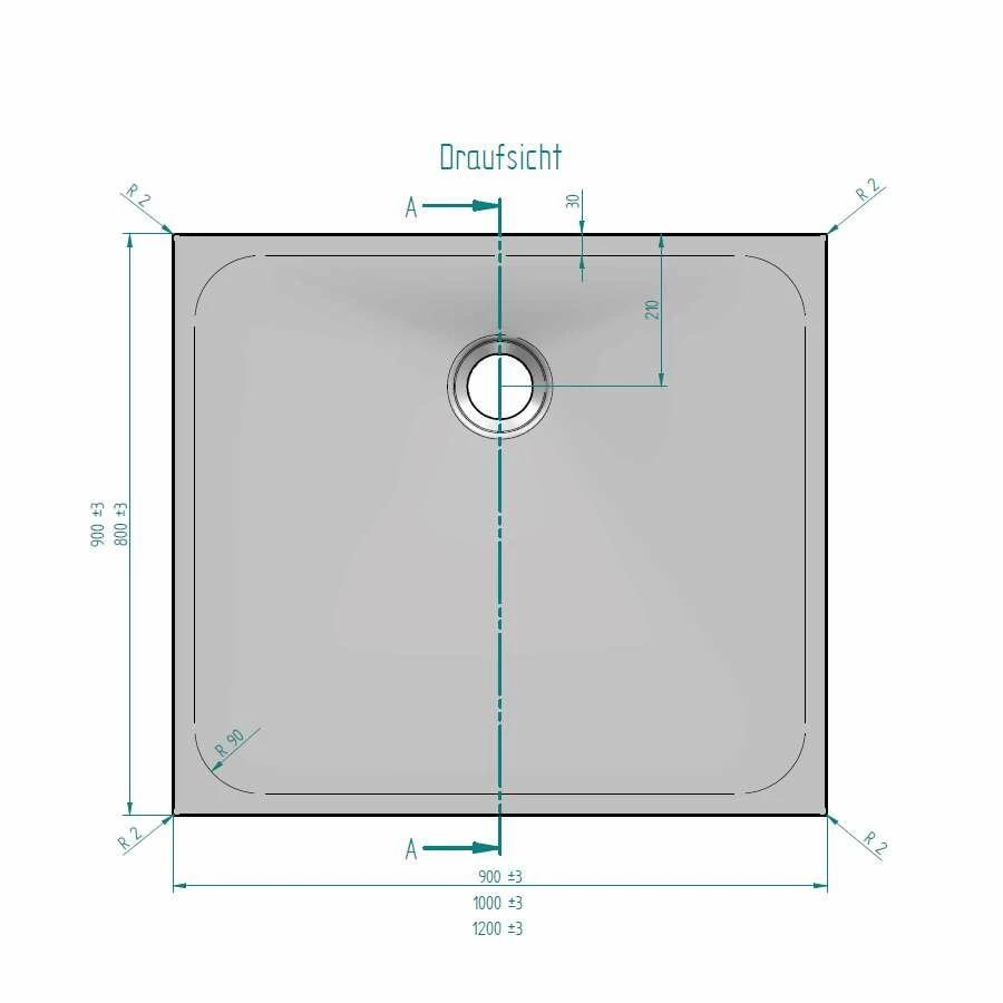 Bei den Maßen 800/900, 800/1000, 800/1200 und 900/1200 werden 6 Wannenfüße benötigt, bei den Maßen 900/1400 werden 9 Stück benötigt.
