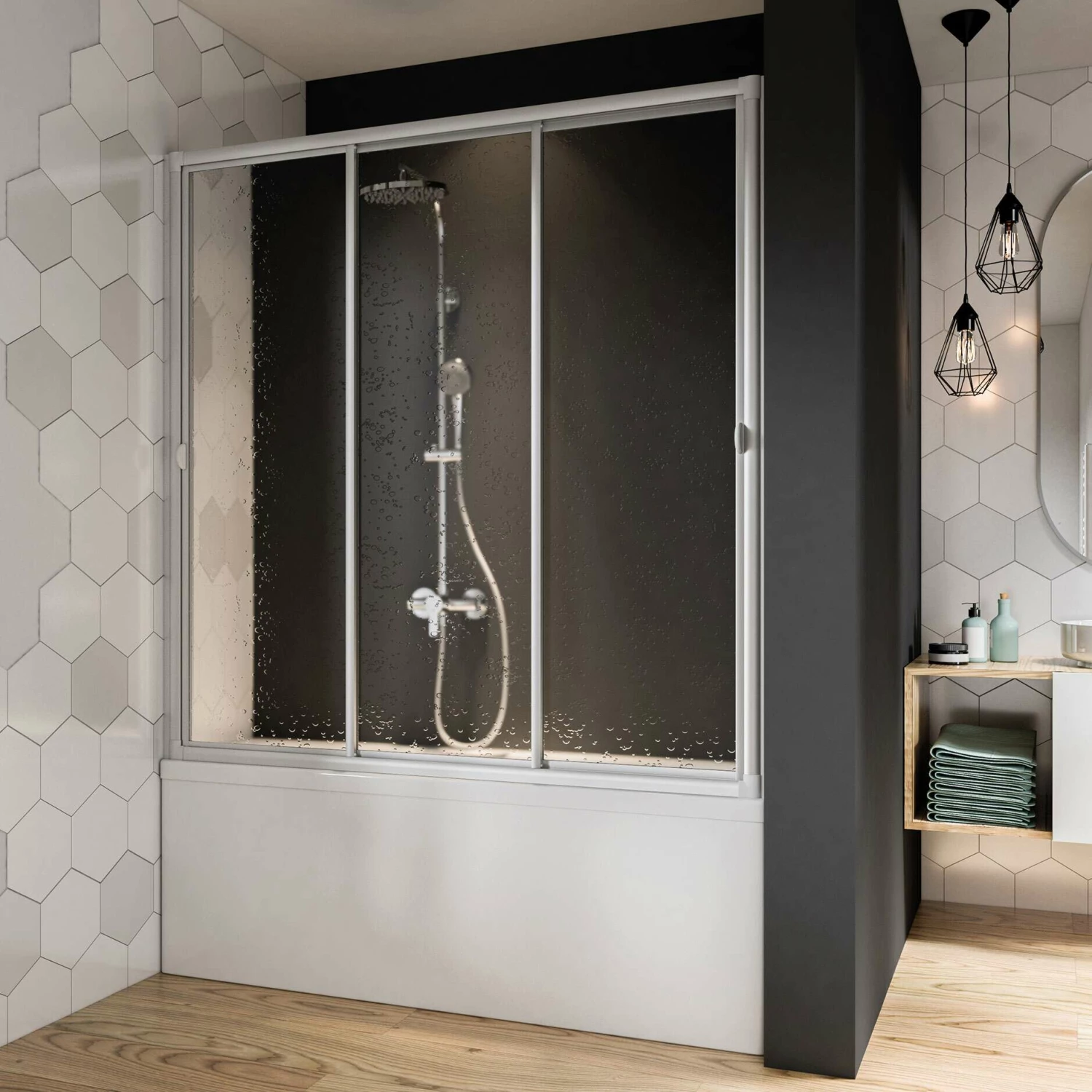 - optional mit Seitenwand über Eck montierbar: