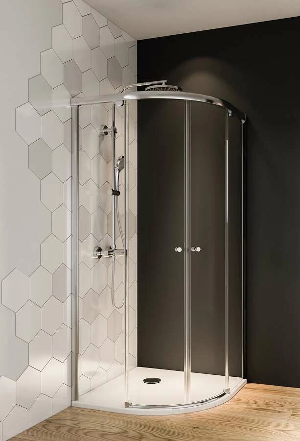 - Duschbeckengröße: 800 / 800 mm, Radius: 500 mm, Höhe: 1900 mm