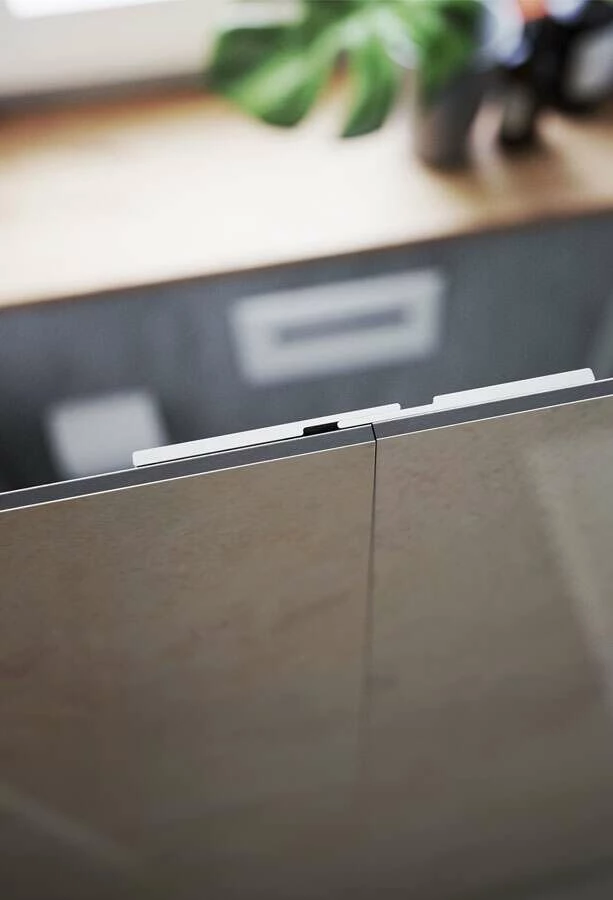 - Verbindung erfolgt über das Ansetzen der Platte in einem ca. 45° Winkel, anschließend über das Stecken in das gegenüberliegende Profil