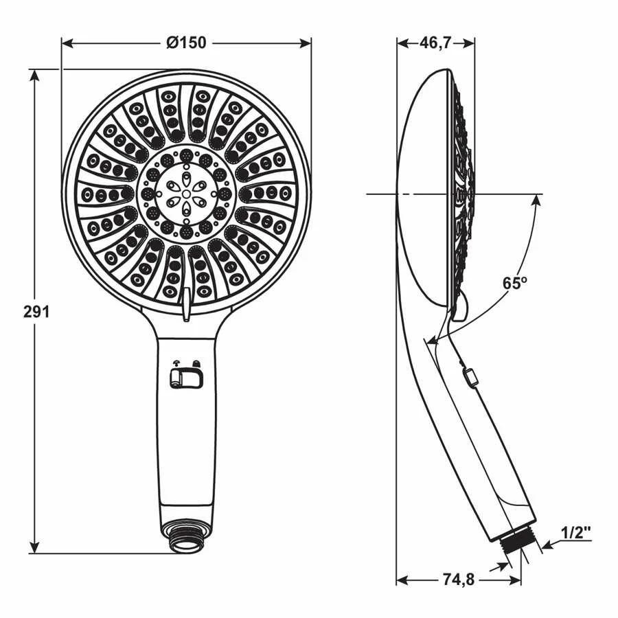 - 5 Strahlarten: Normalstrahl, Softstrahl, Massagestrahl, Normal-/Softstrahl, Normal-/Massagestrahl