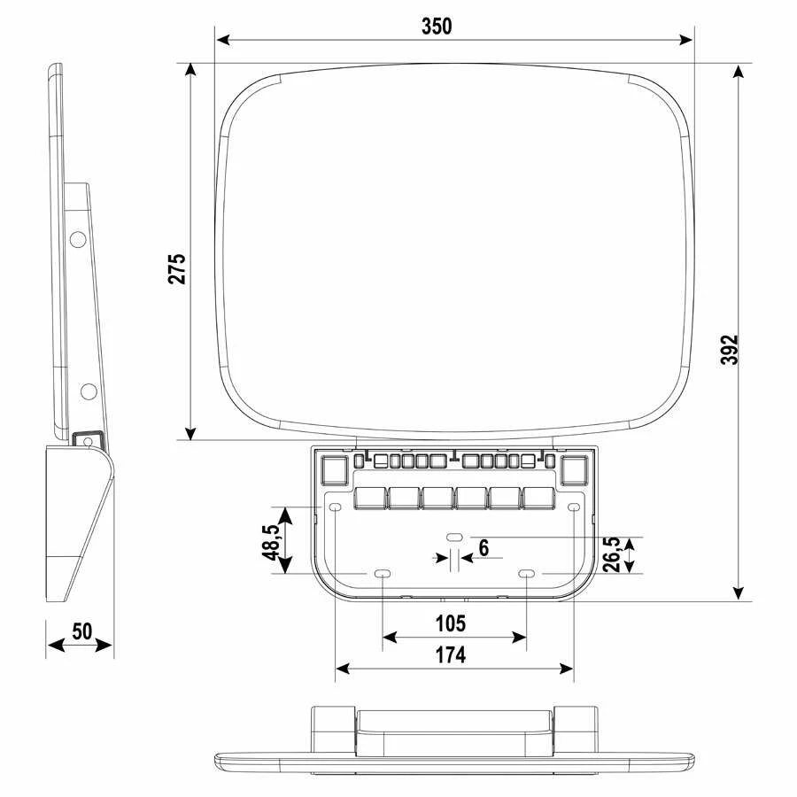 - ca. B: 350 mm x T: 392 mm x H: 120 mm