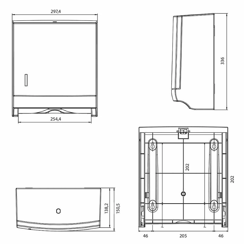 - der ausgeschriebene Faltpapierspender ohne Befüllung