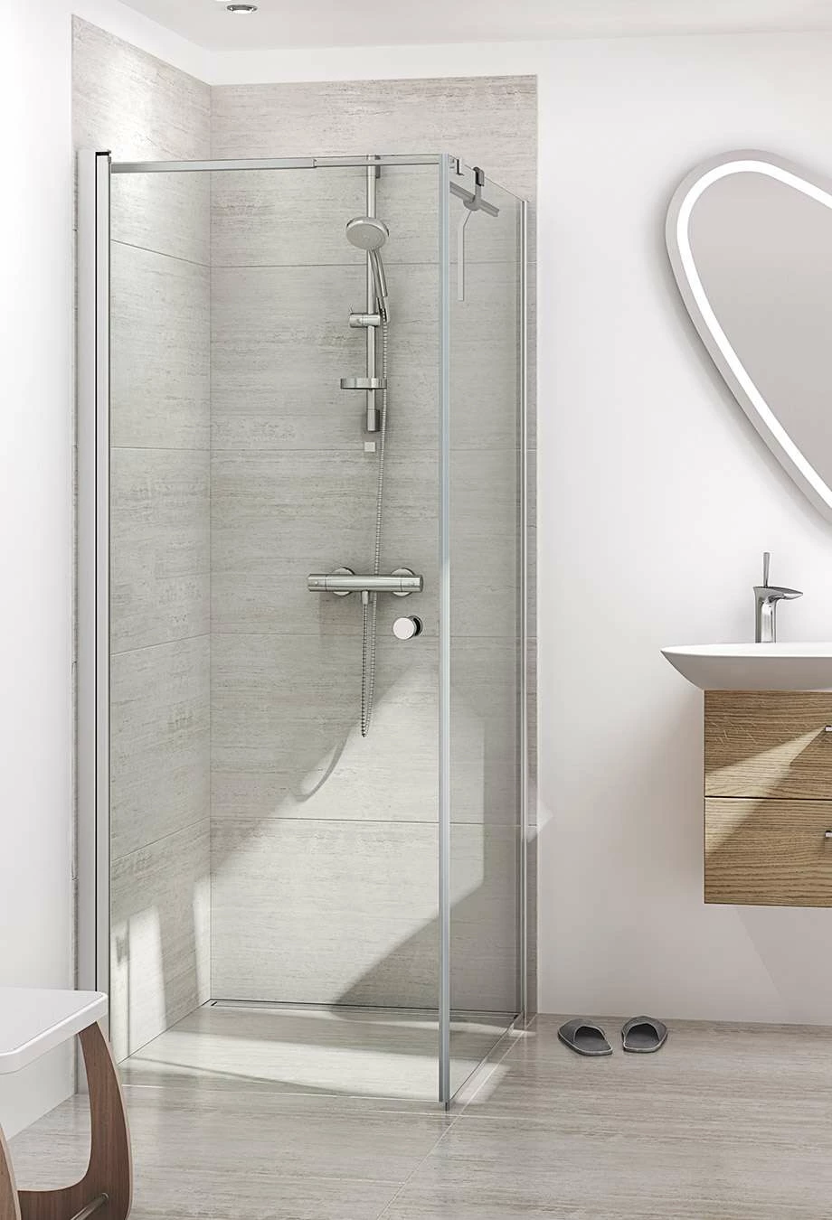 Eine Duschkabine im Standardmaß wird immer kürzer als angegeben gefertigt, z.B. ca. 860 mm statt 900 mm. Fordern Sie vor der Bestellung Ihren passenden Fliesenspiegel an.
