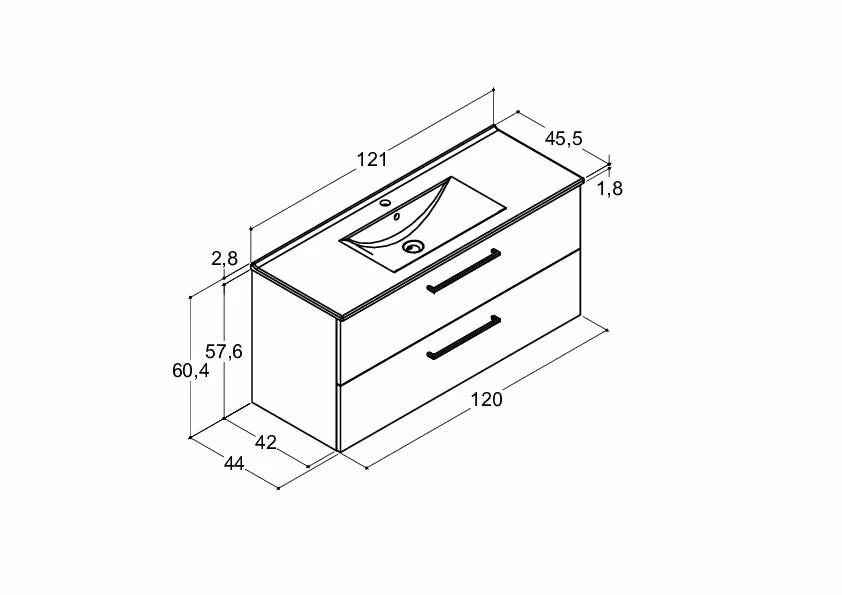 - Maße (HBT): 60,4 x 121 x 44 cm
