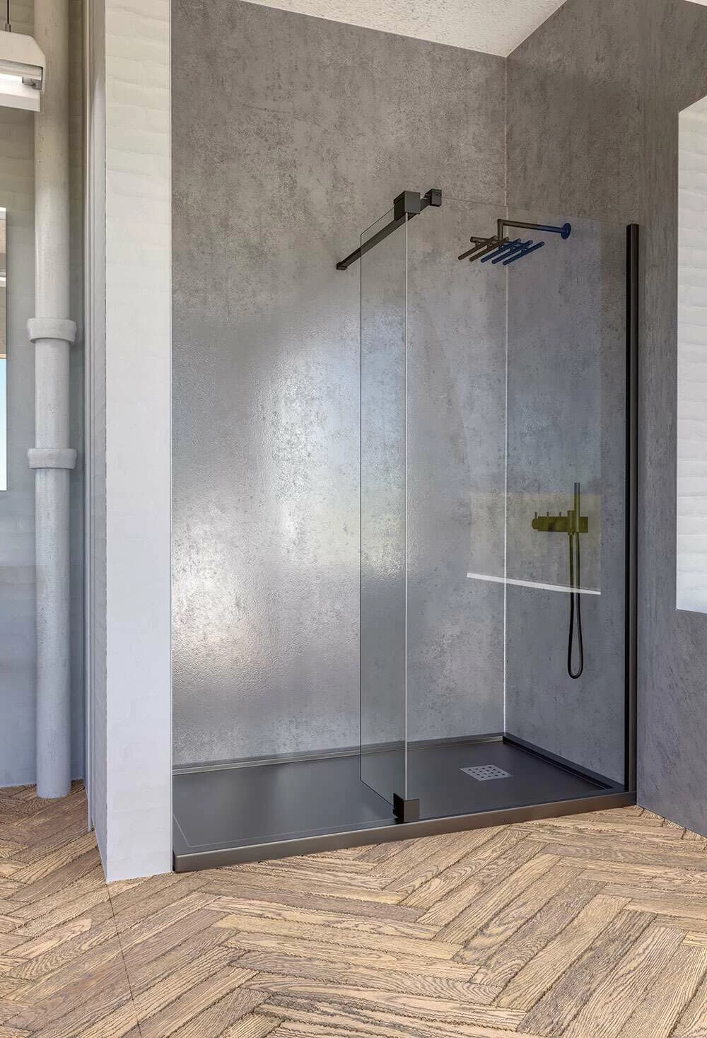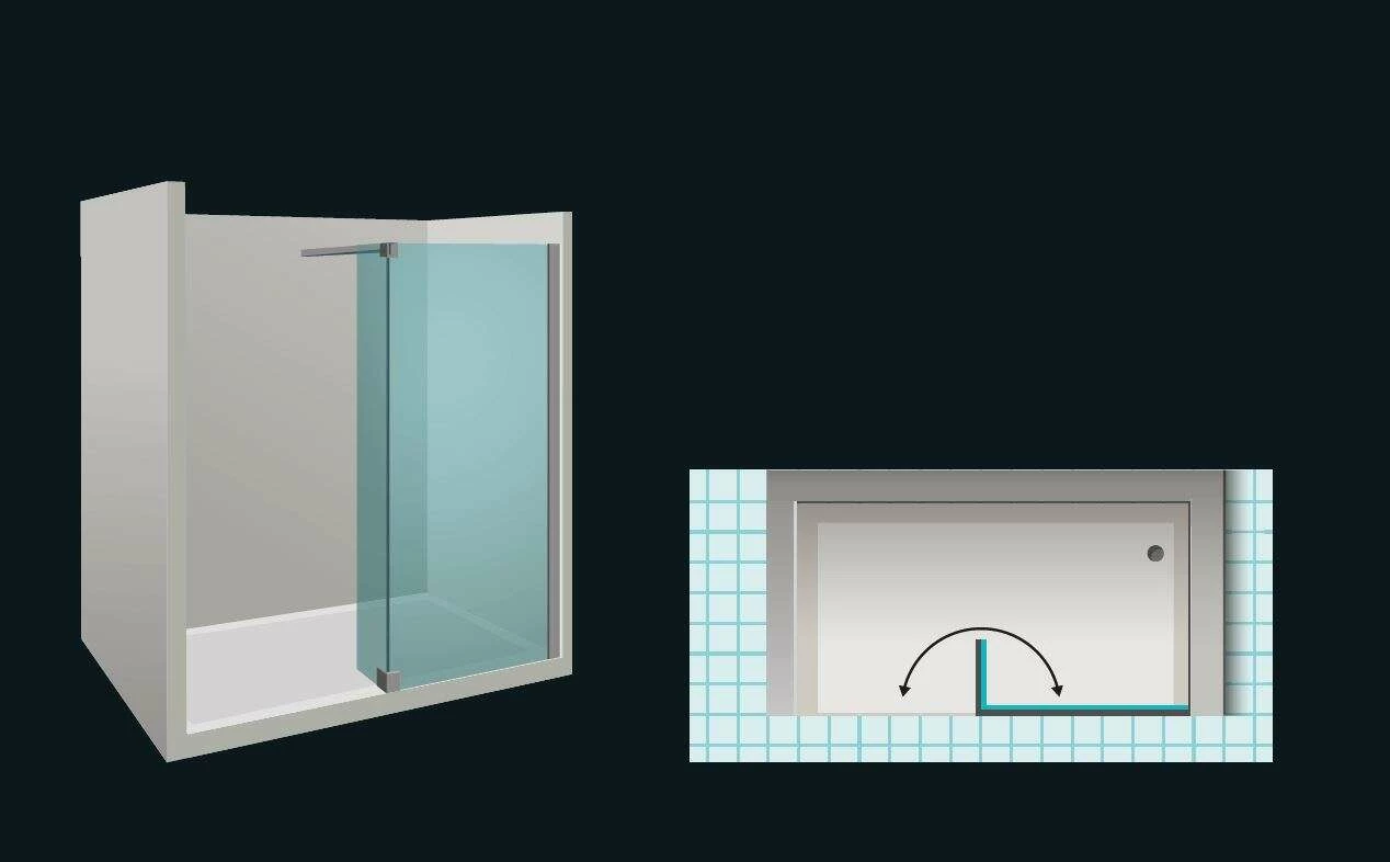 - die ausgeschriebene Walk-In Duschwand mit Pendelteil