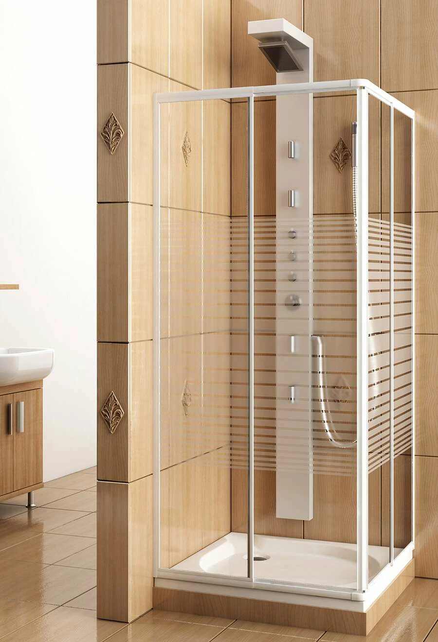 - die ausgeschriebene Eckduschkabine