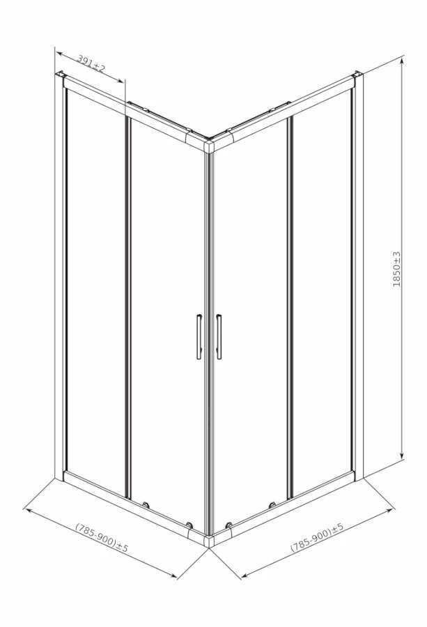 - Festes Glaselement: 391 mm