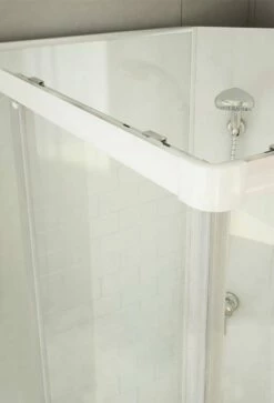 - Duschrückwände aus 4-mm-Einscheibensicherheitsglas (weiß) geprüft nach EN 14449 und EN ISO 12543-2