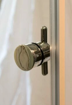 - DuschtĂĽren aus klarem 5-mm-Einscheibensicherheitsglas geprĂĽft nach EN 12150