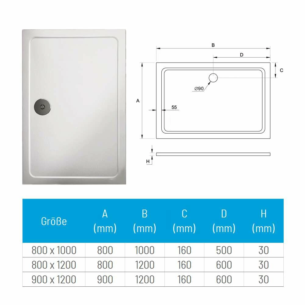 Länge: 1200 mm / Breite: 800 mm / Höhe: 30 mm (37 kg)