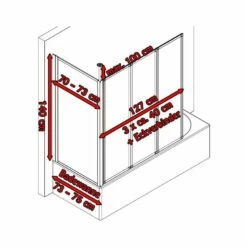 - Breite 1288 mm, Höhe 1400 mm, fĂĽr Badewannentiefe 730 – 750 mm