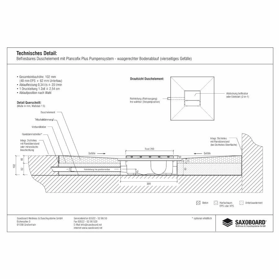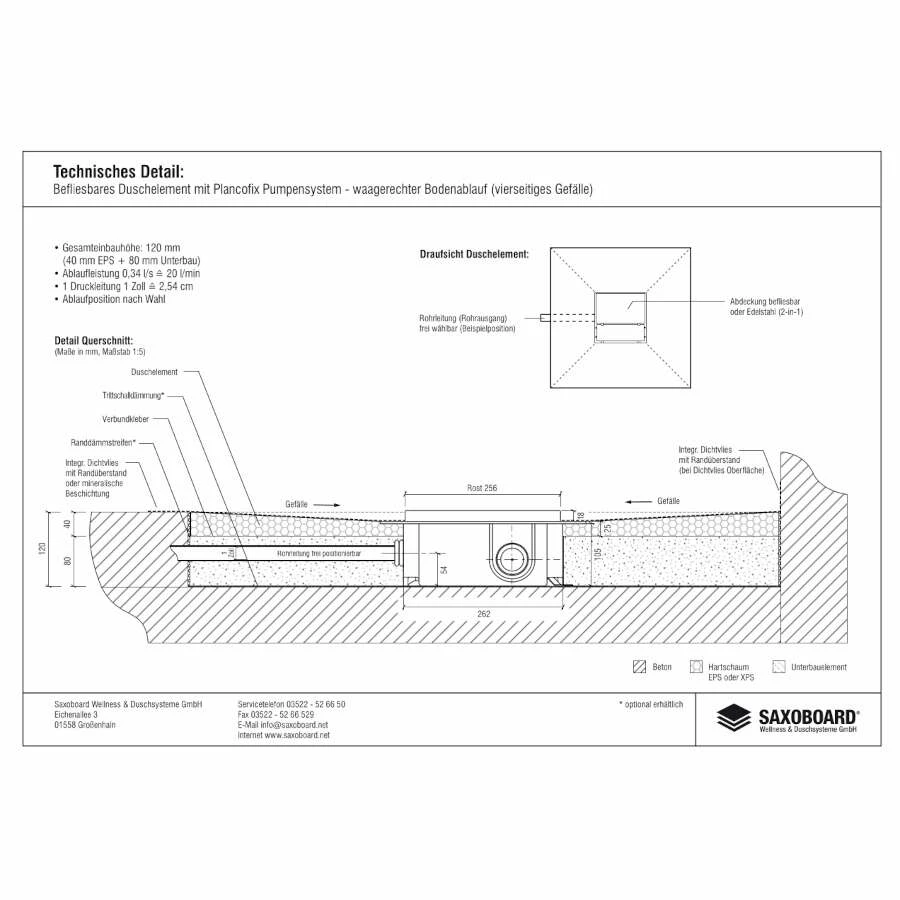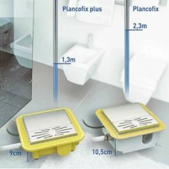 - Ohne Unterbau ragt die Plancofix Plus Pumpe 62 mm unter dem Duschelement heraus, bei der Plancofix Pumpe sind es 80 mm