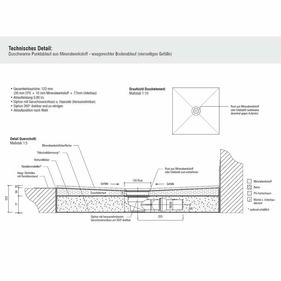 - mit passendem Ablauf, waagerecht oder senkrecht