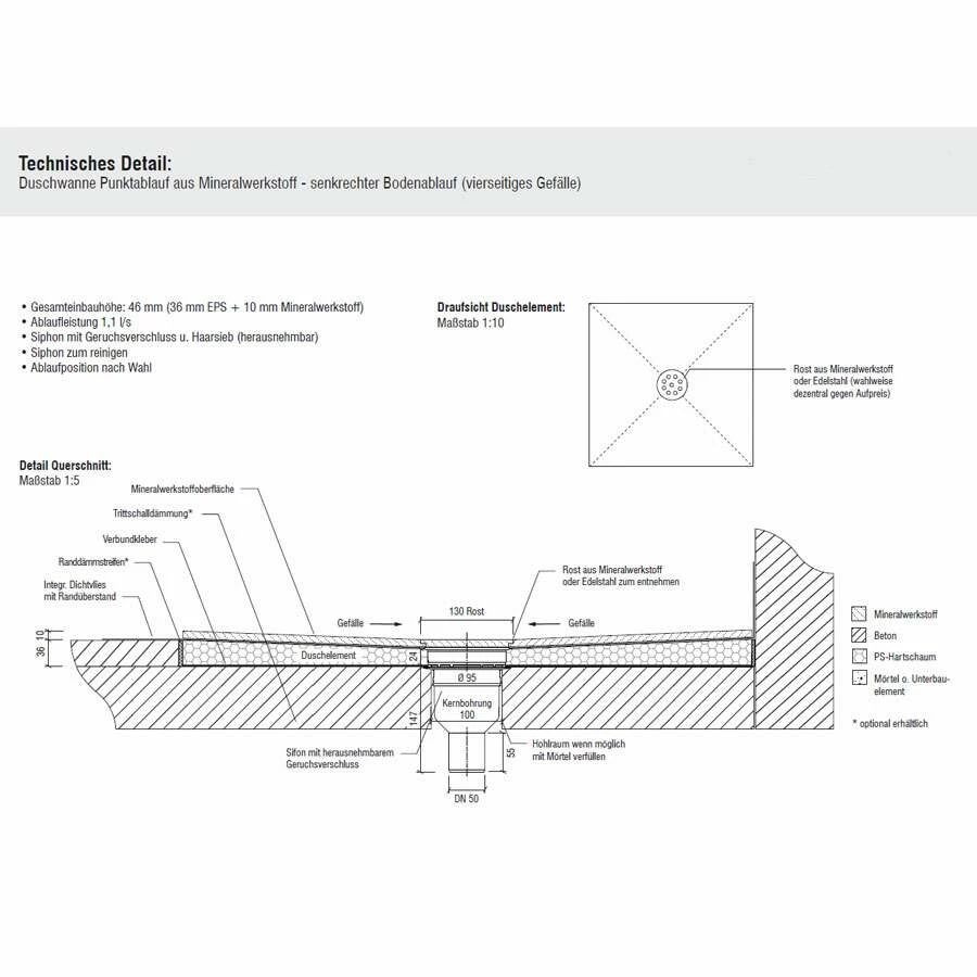 - Höhe: 46 mm (inkl. Ablauf 123 mm)