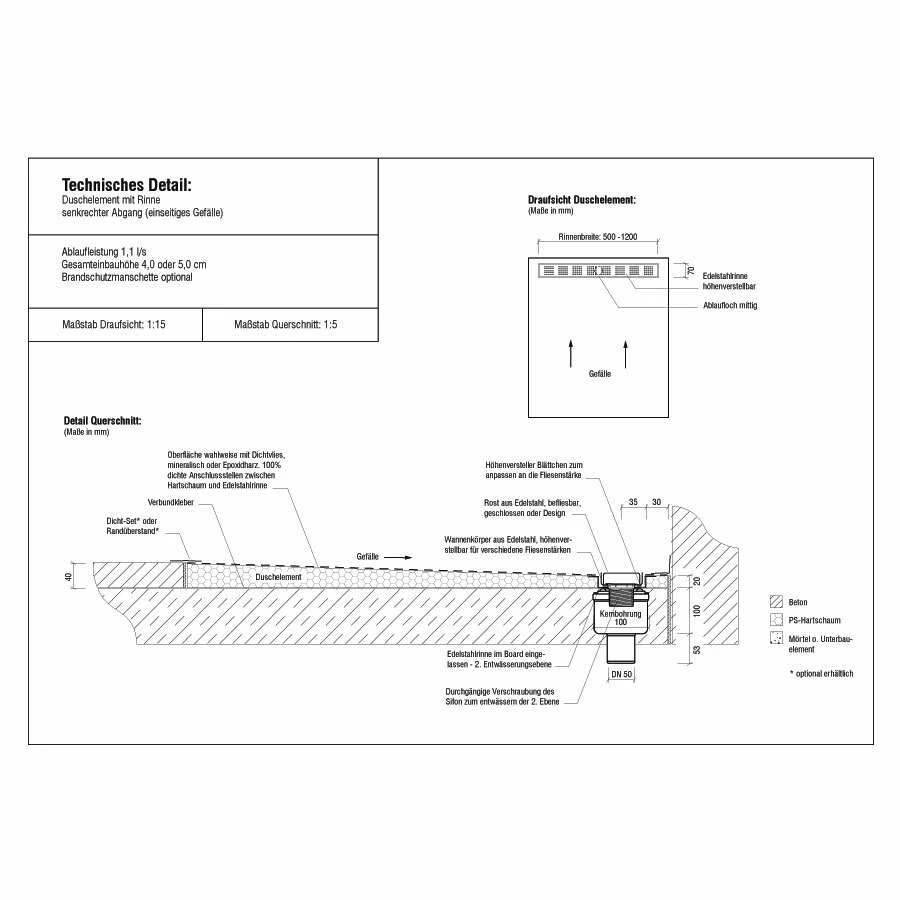 - Höhe: 40 mm (inkl. Ablauf 125 mm)