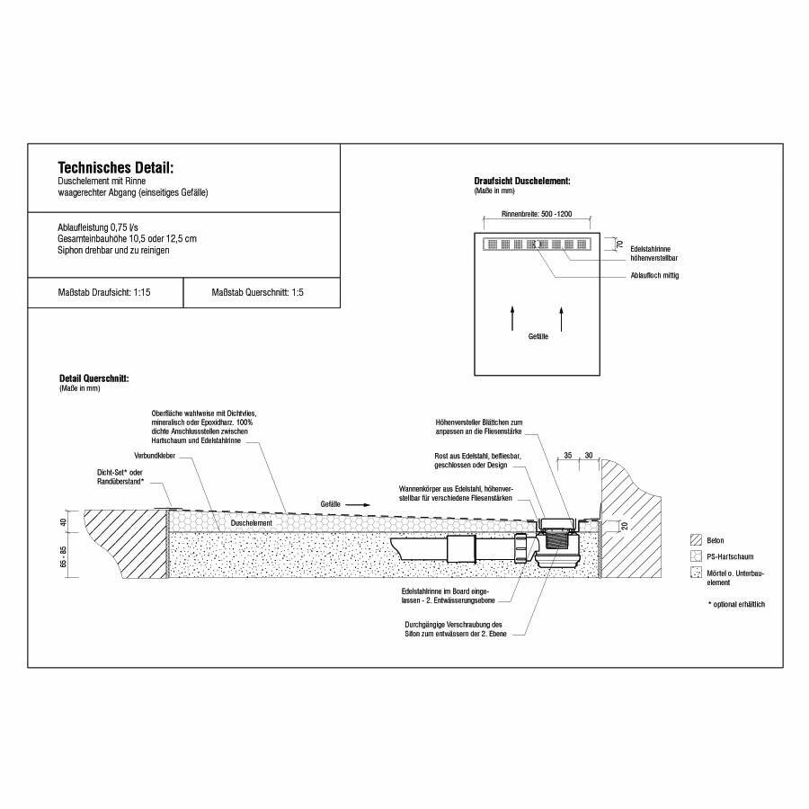- Höhe: 40 mm (inkl. Ablauf 125 mm)