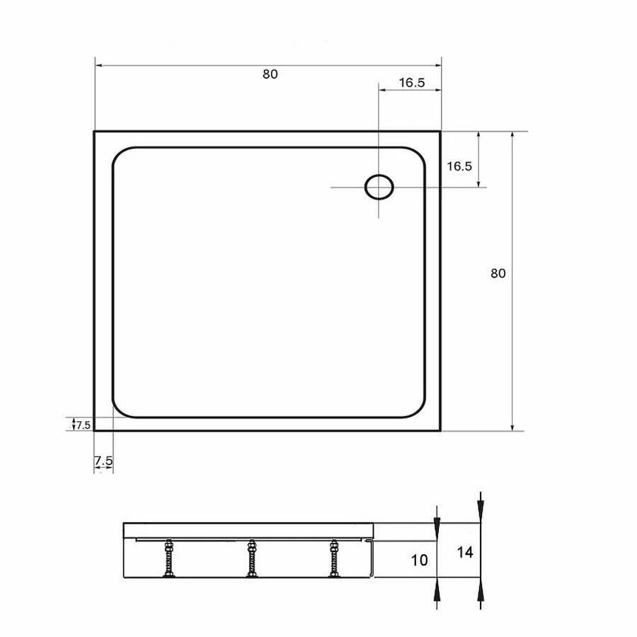 Duschmeister Duschwanne Mineralguss Weiss Mit Rinne 90×90 Vero 62