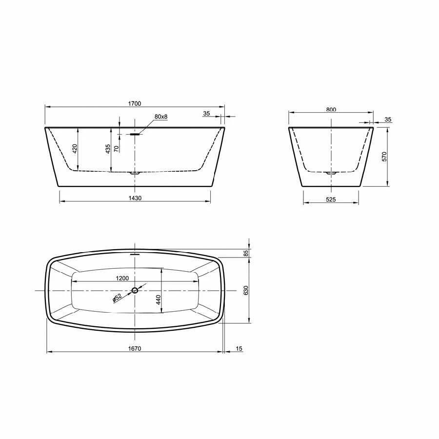 - Länge 1700 x Breite 800 x Tiefe 435 mm