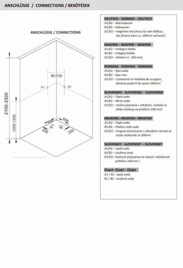 - die ausgeschriebene Duschabtrennung inklusive Rückwänden und Paneel