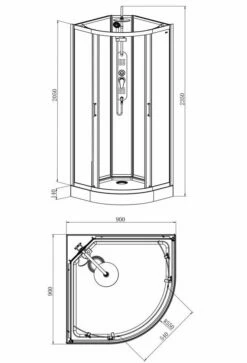- Abmessungen: 900×900 mm, Höhe: 2350 mm