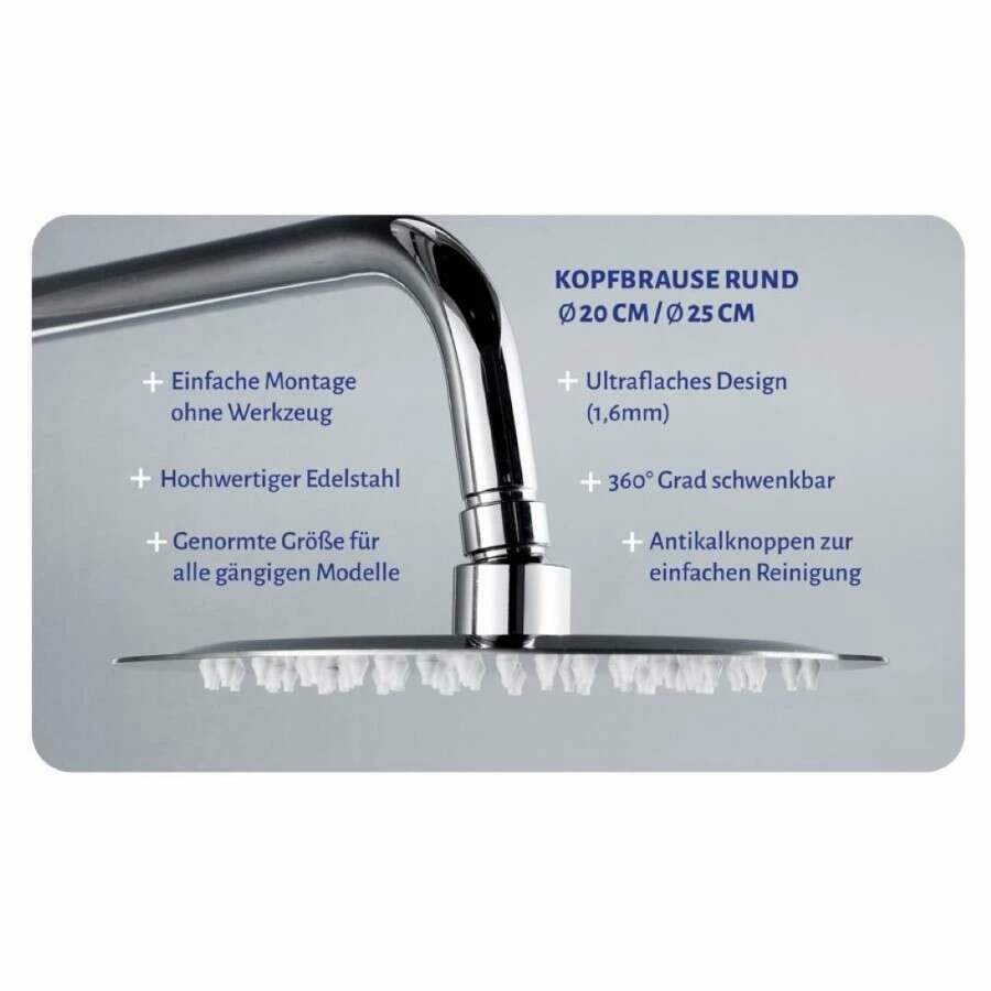 - Kopfbrause Edelstahl Ø 20 cm rund