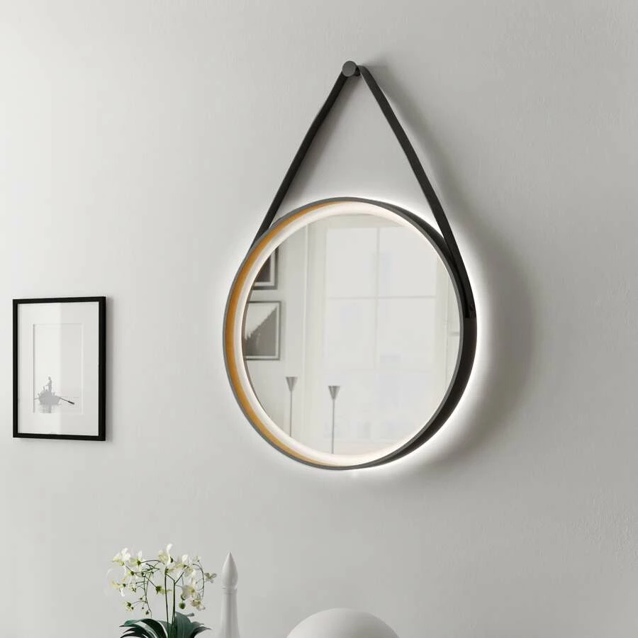 - Befestigungshaken und hochwertiges Aufhängeband in Lederoptik