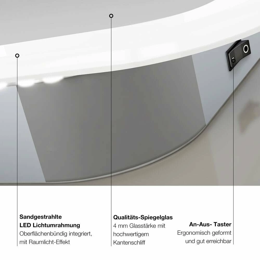 - Leuchtspiegel mit LED-Lichtumrandung mit Raumlicht-Effekt