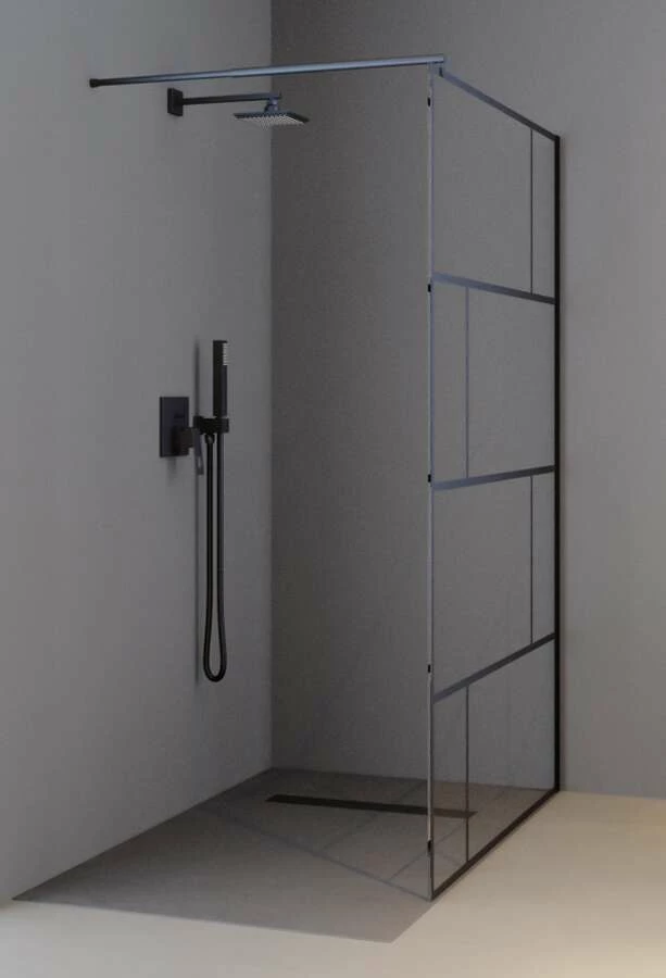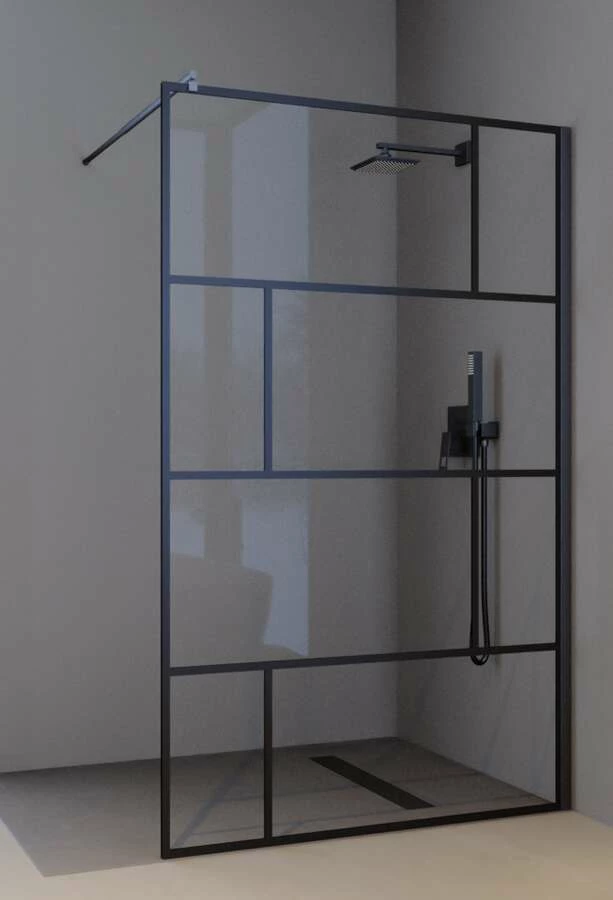 - Moderne transparente Duschabtrennung in matt schwarzem Aluminiumprofil