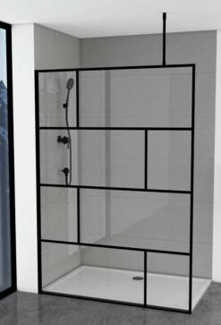 - Moderne transparente Duschabtrennung in matt schwarzem Aluminiumprofil