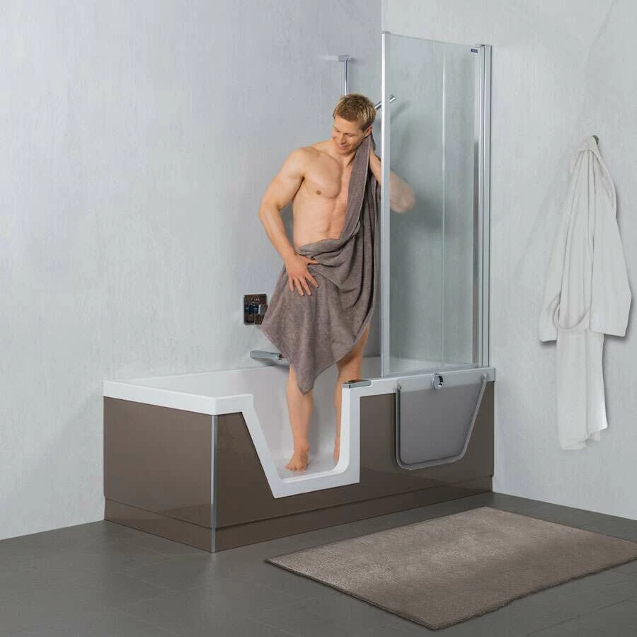- Badewanne mit abnehmbarem Türeinsatz zur Nutzung auch als Duschwanne mit niedrigem Einstieg
