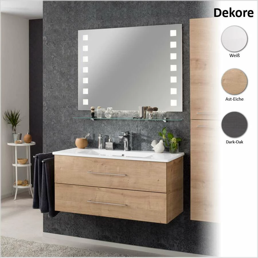 - Wahlweise mit Sensorschalter und Ambiente-Light unter dem Spiegel (indirekte Beleuchtung)