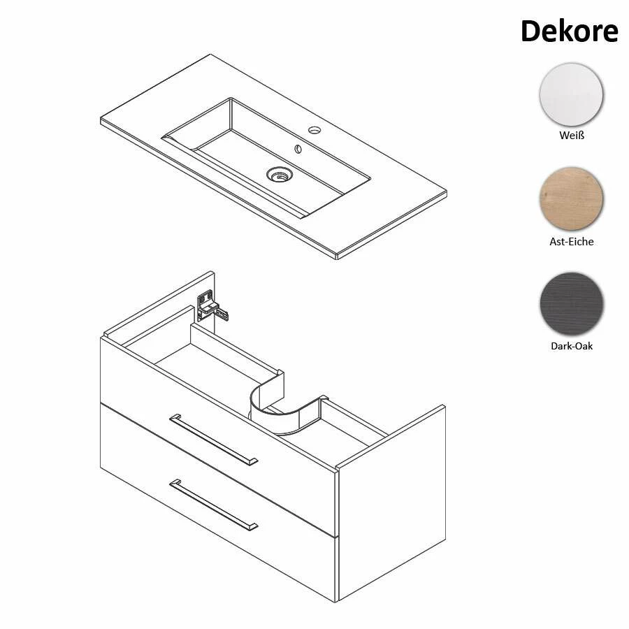 - mit hochwertigem Keramik-Waschtisch in weiß, Stärke 2,2 cm