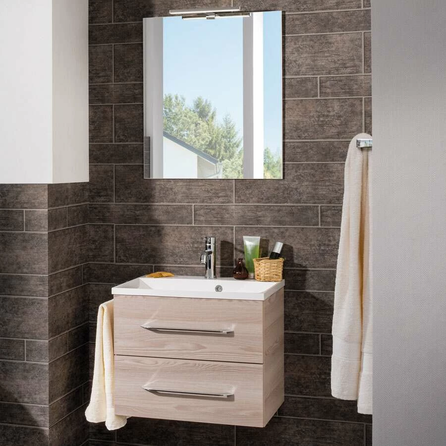 - das Spiegelelement mit LED-Aufsatzleuchte