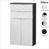 - Front: Graueiche-Optik / Weiß Hochglanz