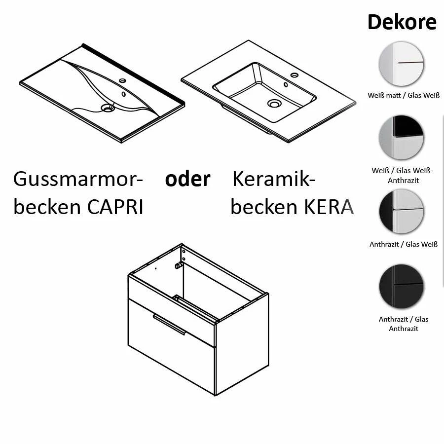 - Kara Mineralgusswaschbecken Domino 80 cm