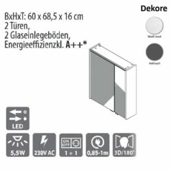 - Höhe 68,5 cm, Breite 60 cm, Tiefe 16 cm