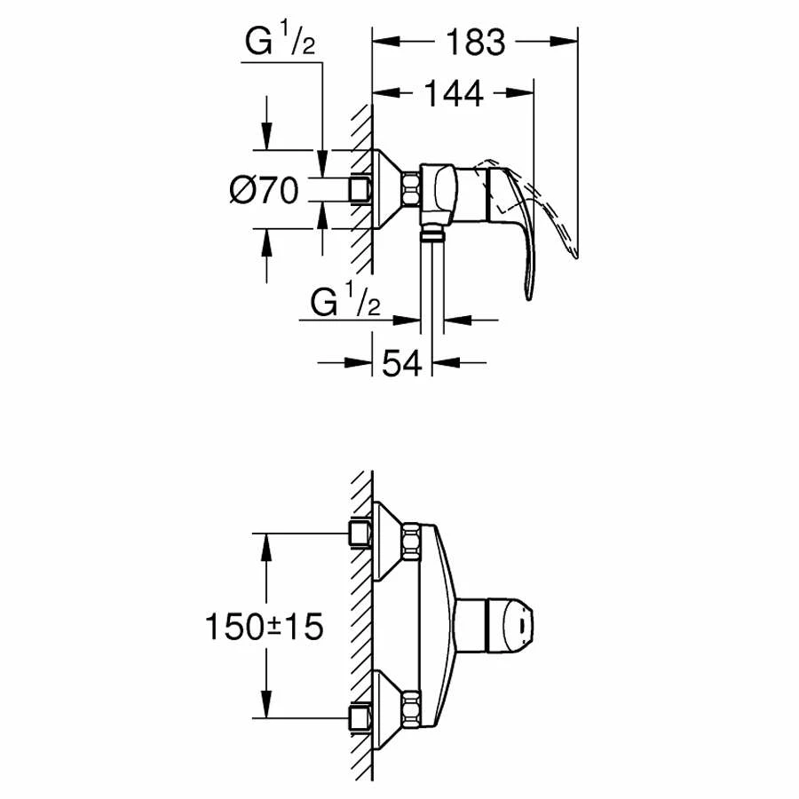 - Brauseabgang unten 1/2” mit integriertem Rückflussverhinderer