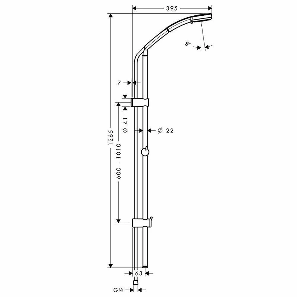 - Brausestangenlänge: 600 – 1050 mm