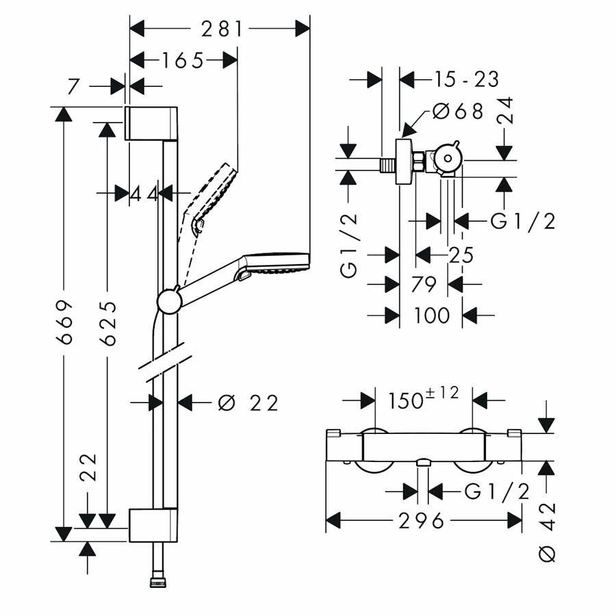 - besteht aus: Handbrause, Brausethermostat, Brausestange, Handbrausehalterung, Brauseschlauch