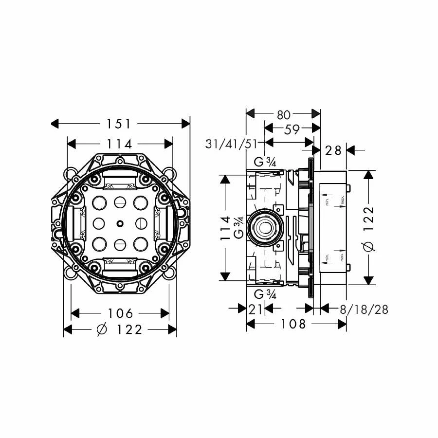 - passend für alle Brausen-, Wannen- und Thermostat-Fertigsets Unterputz
